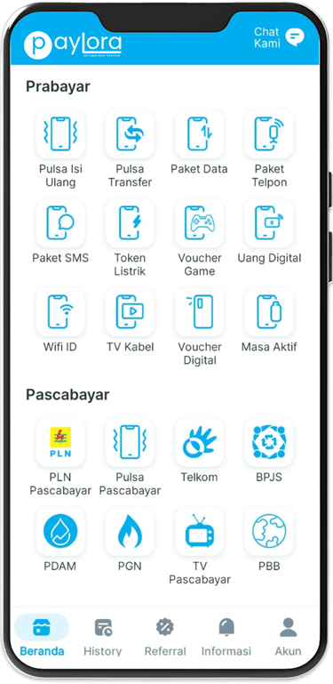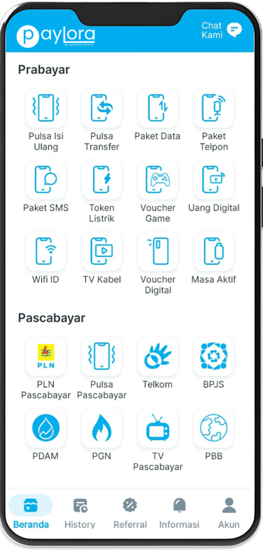 Paylora menyediakan berbagai produk digital seperti pulsa, PPOB (listrik, air, dll), voucher game, dan lainnya. Ini adalah kebutuhan sehari-hari, jadi kamu tidak perlu khawatir kehabisan pasar
